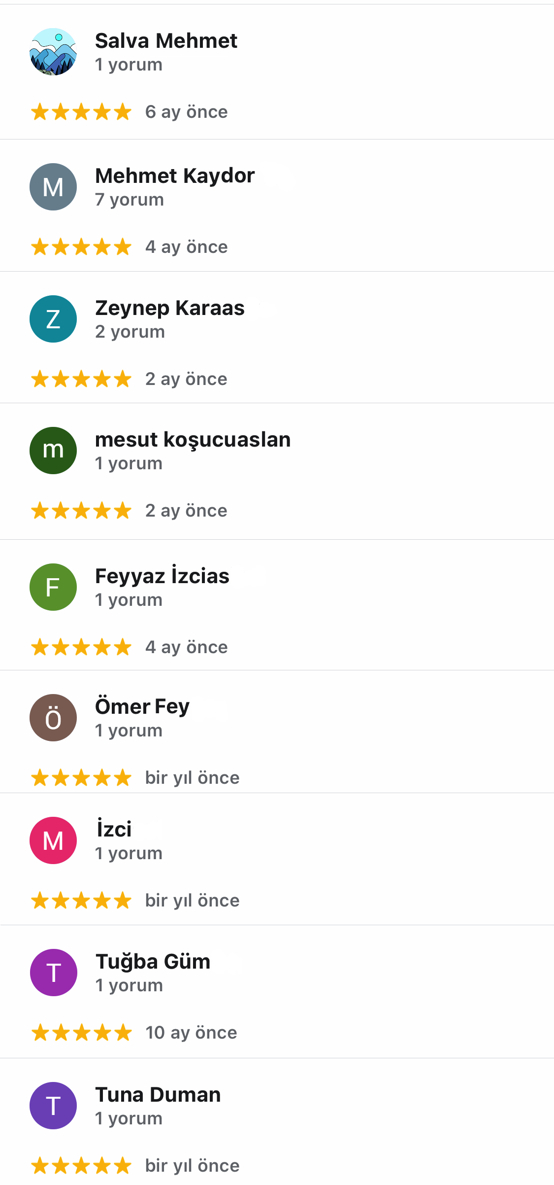 (Bazı yorumlar google business sayfasında göremeyebilirsin, 2012 sonrası yorumlardan seçilmiştir)